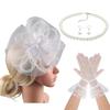 Lace Flower Fascinator Hat Hairband Necklace Gloves for Cocktails Event Dressingup Roleplay Flapper Costume Accessories