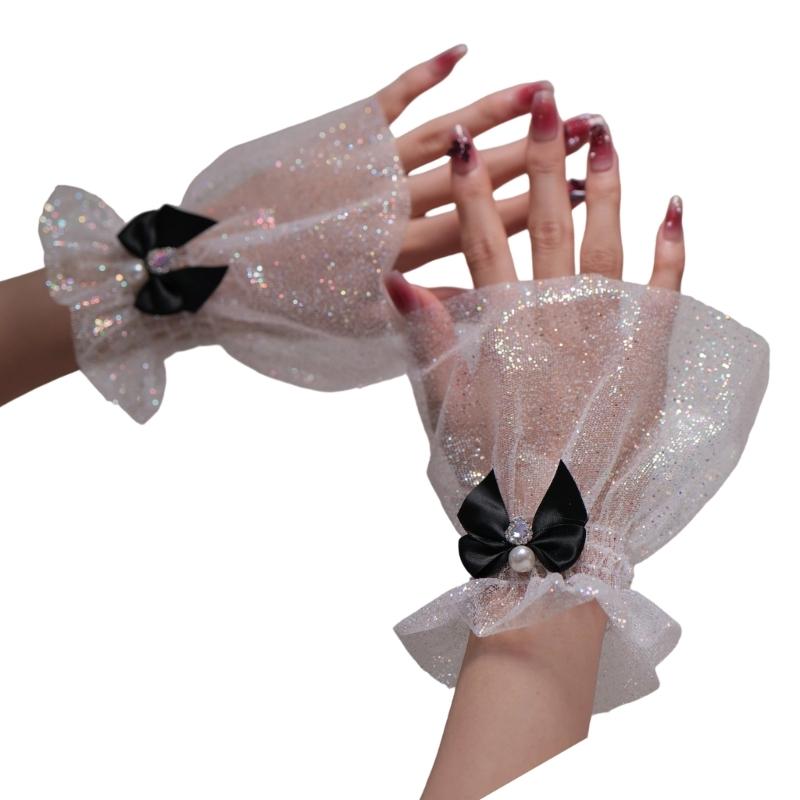 Bowknot Wrist Cuffs For Nails Photography Breathable Glitter Fabric Elastic Cuffs Fashion Accessories