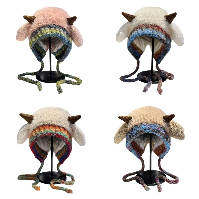 Lovely plush horn hat combines playful knitted design with stretchable polyester, offering multiple bright color to collocation any outfit.