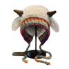 Crafted from soft, breathable polyester fibers, this thermal ear flap hat features ribbed knitting and whimsical horn accents for all day comfort in cold weather.