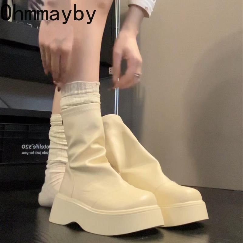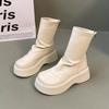 Winter Chunky Heel Woman Ankle Boots Cosy Soft Leather Shoes Street Style Slim Height Increase Short Botas Mujer