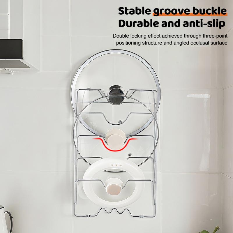 Pot Lid Storage Rack, Rust-Free Metal, Kitchen Organisation, Wall-Mounted Rack with Five Levels