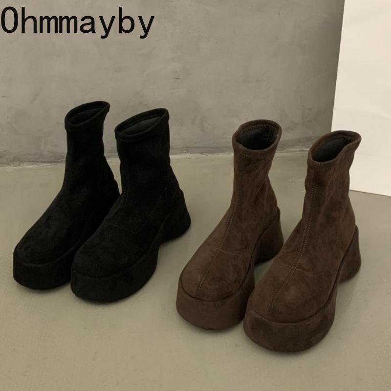 Platform Woman Ankle Boots Fashion Round Toe Height Increase Shoes Punk Style Ladies Modern Bottes
