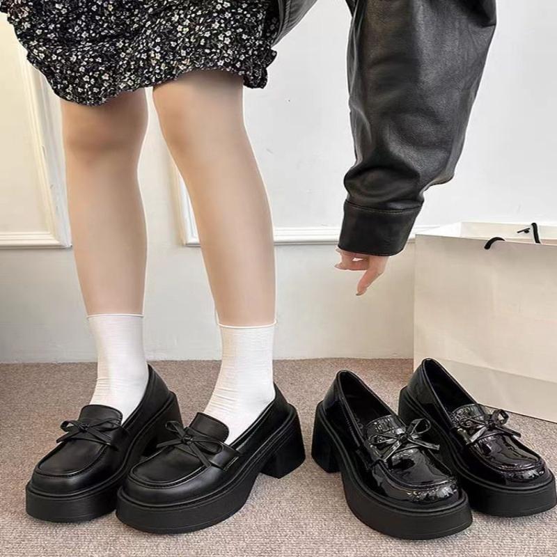 Fashionable New Comfortable And Durable Women'S Single Shoes Elegant Spring And Autumn Bow Tie Thick Soled Casual Shoes