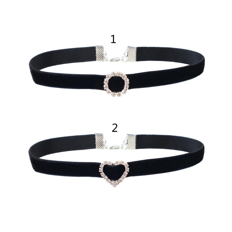 Crystal Round Love Heart Black Velvet- Collar Necklace Vintage Rhinestones Choker Punk Clavicle Chain Gift for Women