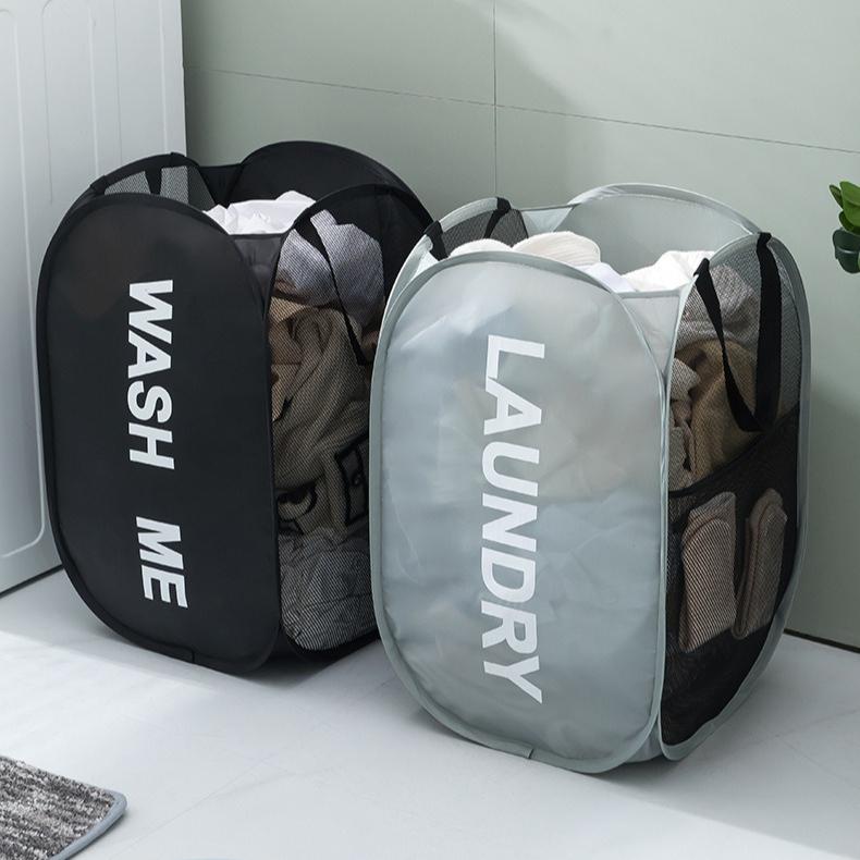 Durable Folding Simple Laundry Basket Large Washable Clothes Toy Storage Organizer Fashion Mesh Breathable Bathroom Accessories