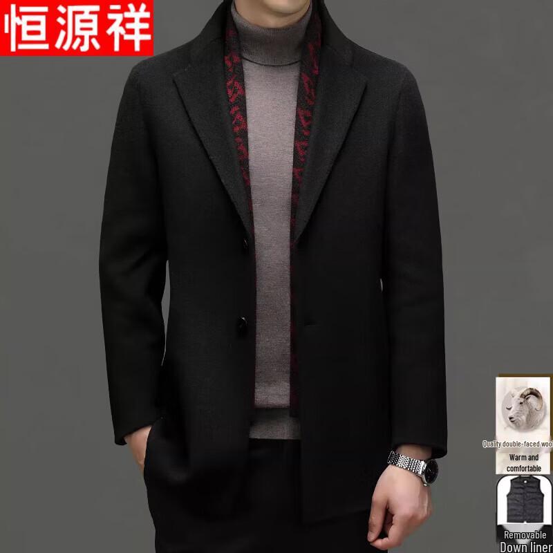Hengyuanxiang Men's Business Scarf Collar Wool Blend Suit Jacket