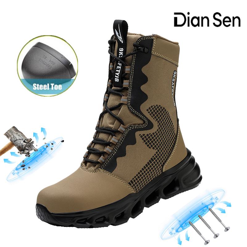 Men Work Safety Boots Steel Toe Boots Anti-smash Anti-puncture Work Shoes High Top Work Boots for Warehouse & Logistics Work