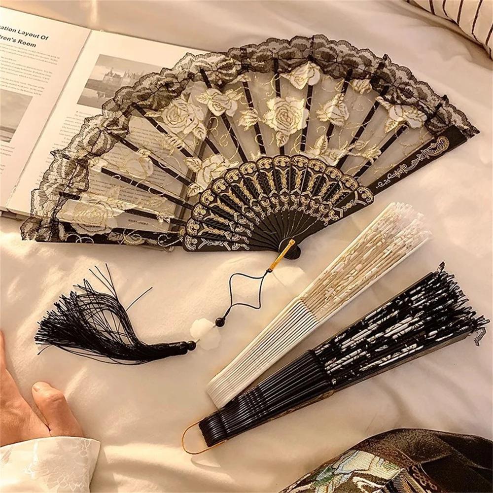 Gothic Ladies Lace Hand Fan Vintage Spanish Victorian Folding Fan for Wedding Party Favor Gift Dance Fan Photo Props Home Decor