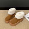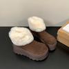 Vintage Platform Heels Women Fur Snow Boots Comfort Height Increase Keep Warm Cotton Short Booties Winter Women's Plush Shoes