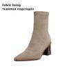 Autumn Winter Fashion Women Boots Square Toe Yarn Elastic Ankle Boots Kid Suede Thick Heel Shoes Female Socks Boots Bota Feminin