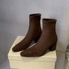 Stretch Slim Women Thick Heel Ankle Boots Fashion Back Zippers Pointed Toe Shoes Winter Short Plush Modern Women's Short Booties