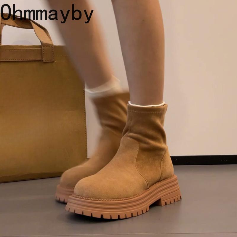 Vintage Platform Heel Women Ankle Boots Fashion Autumn Winter Slip On Short Booties De Mujer