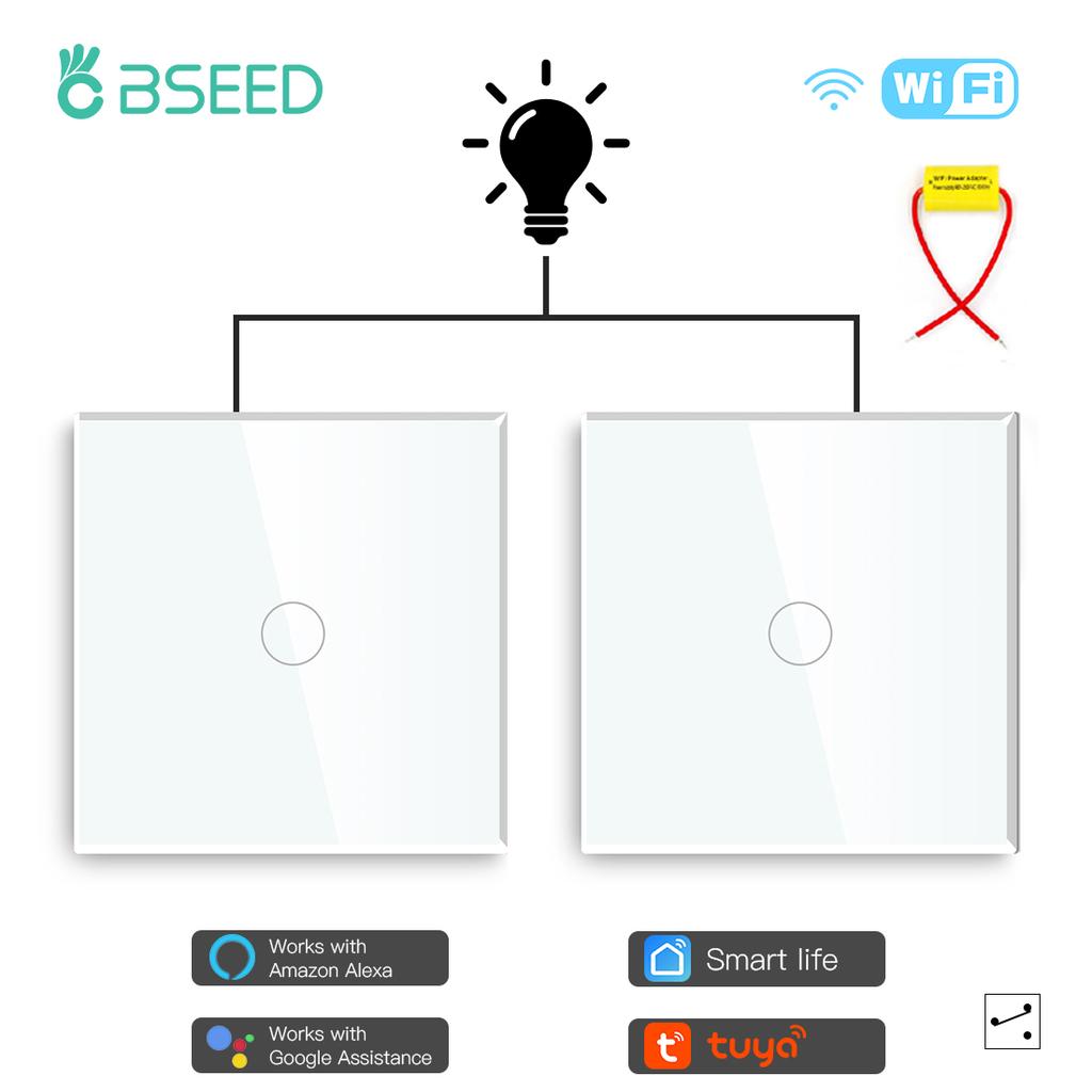 BSEED 1/2/3Gang Wifi Touch Switches 2Way Wall Light Switches Stairs Glass Tuya Smart Life Alice Control No Neutral 2 Pack