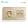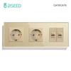 BSEED Dual Internet Sockets CAT6 Wall Socket EU Power Sockets Plus Network PC Data Computer Connecter Outlets Glass Panel