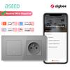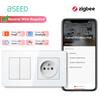 BSEED Zigbee 1/2/3/4Gang Smart Mechanical Button Switches Tuya Alexa Control Plus Normal French Power Socket Plug Glass Panels