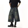 American Retro Denim Cropped Pants Male and Female Trendy Brand Washed Fancy Loose Easiest for Match Casual Wide-Leg Denim Shorts Denim Shorts