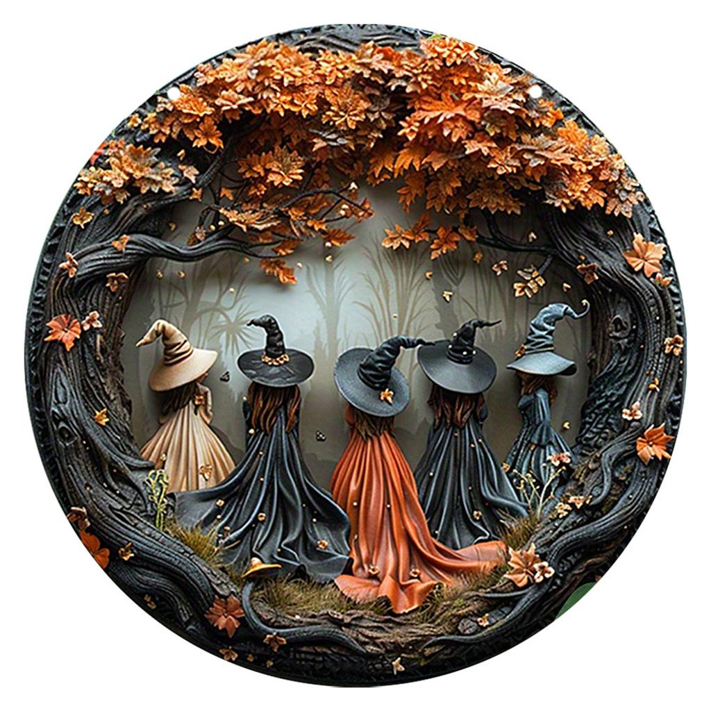 Five Witches Halloween Door Decorations Wear Resist Halloween Wreath Decoration Wood Holiday Doorplate for Home Front Door Decor