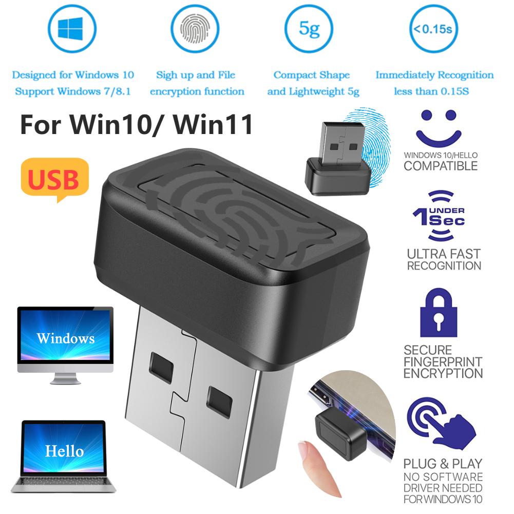 Windows Hello Fingerprint Reader For Windows 10/11 Mini USB Security Key Biometric Scanner PC Fingerprint Sensor Module Password