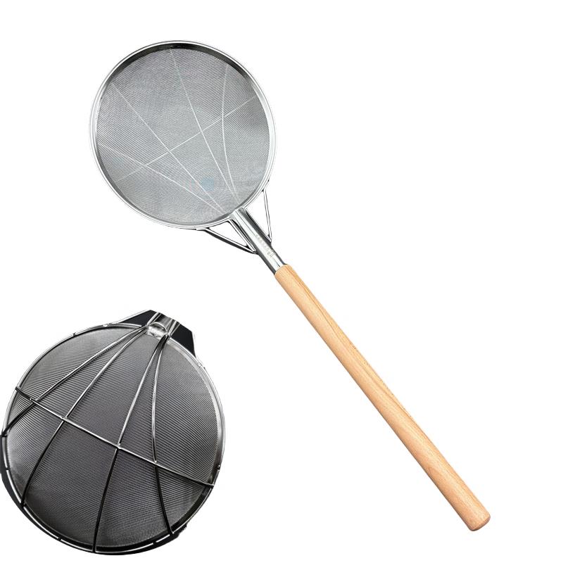 Stainless Steel Large Fine Mesh Skimmer with Wooden Handle