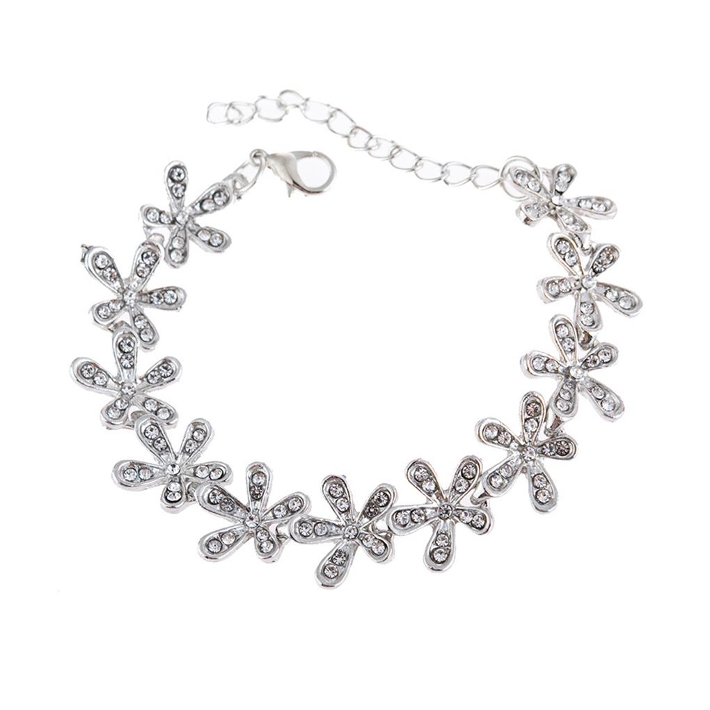 Rhinestone Inlaid Bracelet Women Snow Flowers Adjustable Bangle Hand Charm Chain Jewelry Gift