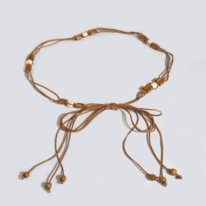 Bohemian Waist Rope Belt With Wooden Beads For Casual Summer Festival Wear