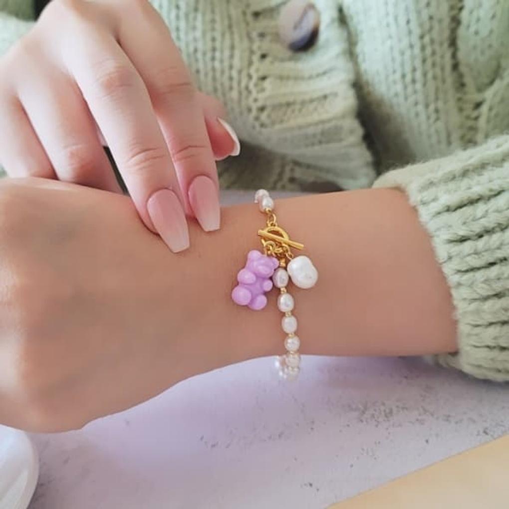Women's Natural Freshwater Pearl Bead Haribo Layered Bracelet