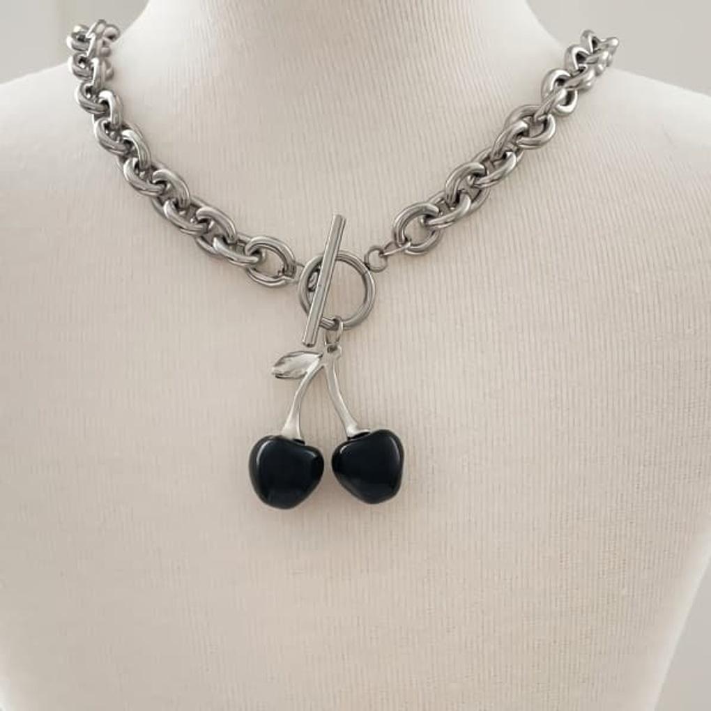 Women's Cherry Pendant Thick Chain Surgical Steel Necklace