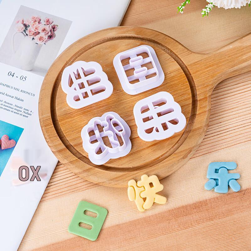 Model4-Piece Happy Birthday Cartoon Carving Mold Set