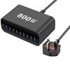 Intelligent Power Distribution 800W Charging Adapter 10 Port Design Metal Texture Suitable for Laptops and Phones