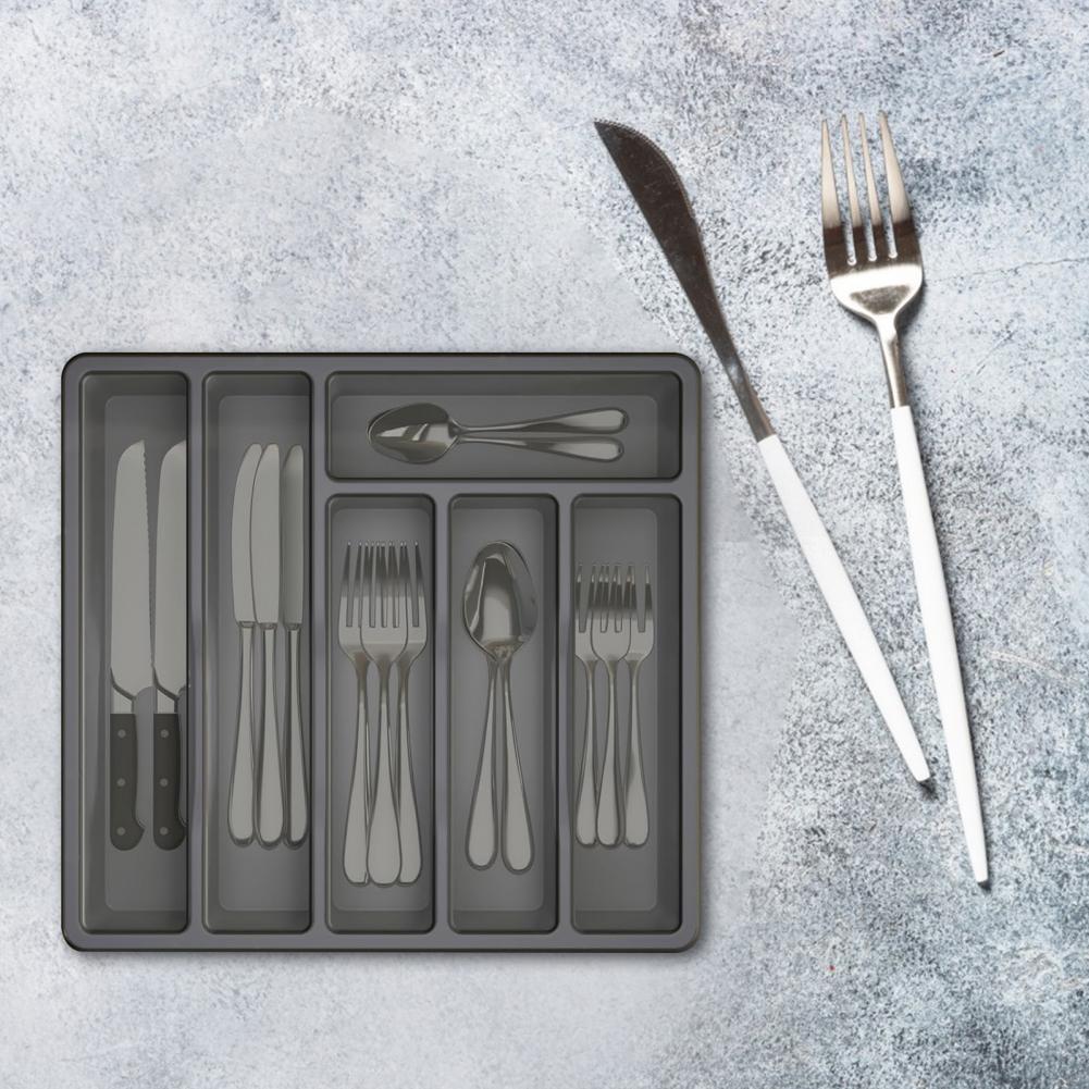 Cutlery Tray with Lid Utensil Storage Box Kitchen Utensil Holder with Lid 6 Compartments Drawer for Chopsticks for Flatware