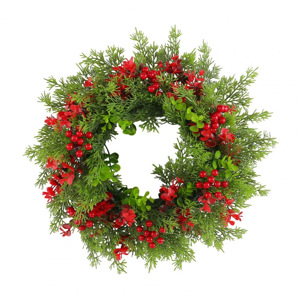 Good luck with your favorite purchases16 Inch Christmas Wreath with Red Berries Artificial Eucalyptus And Cedar Leaf Wreath for Holiday Front Door Wall Home Decoration