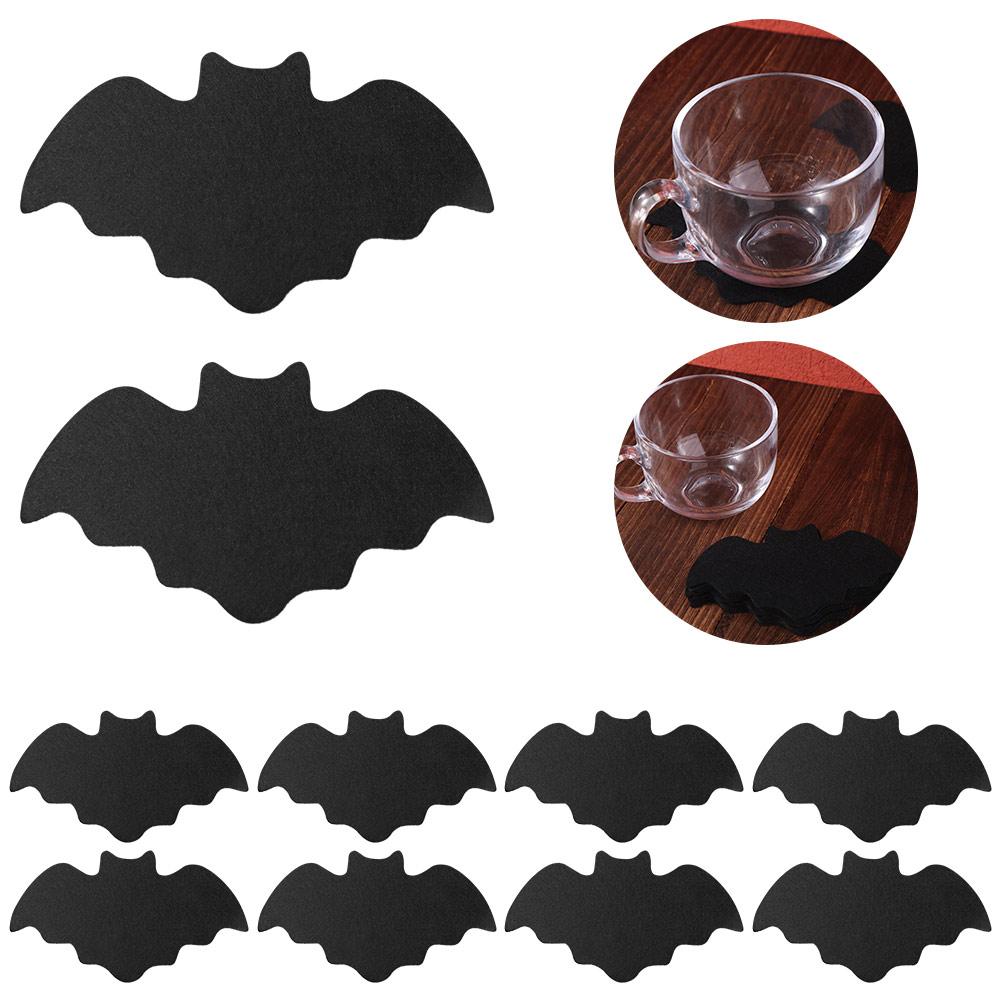 10pcs Durable Black Felt Bat Mat Anti Slip Heat-resistant Halloween Table Mat Gothic Bat Drink Coasters Home Table Decoration