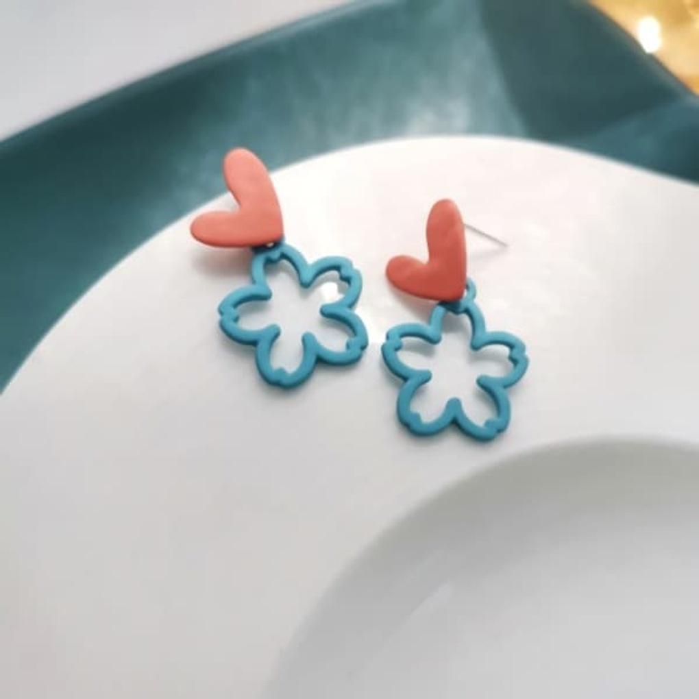 Women's Daily Blue Flower Pink Heart Silver Needle Earrings