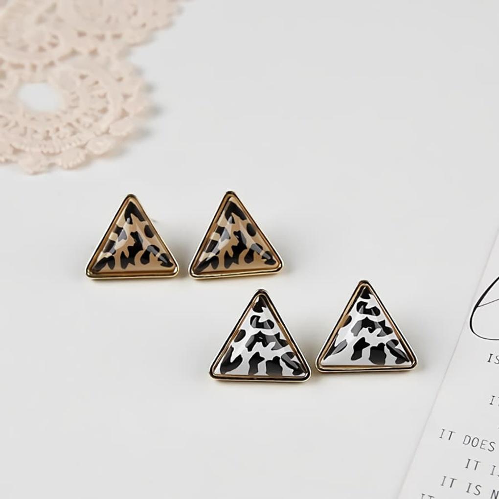 Women's Triangle Leopard Silver Needle Earrings