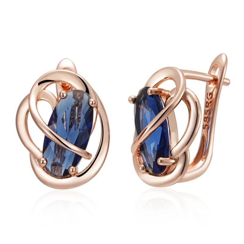 Unusual Shiny Oval Blue Natural Zircon Dangle Earrings For Women Luxury Rose Gold Color Wedding Party Daily Jewelry
