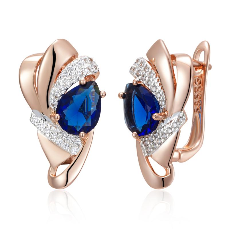 Fashion Blue Stone Drop Earrings For Women Unique Rose Gold Color Mix Ethnic Wedding Crystal Vintage Jewelry