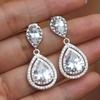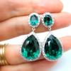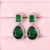 Luxury Square Green Cubic Zirconia Crystal Pendant Earrings Exquisite Fashionable Women'S Wedding Jewelry