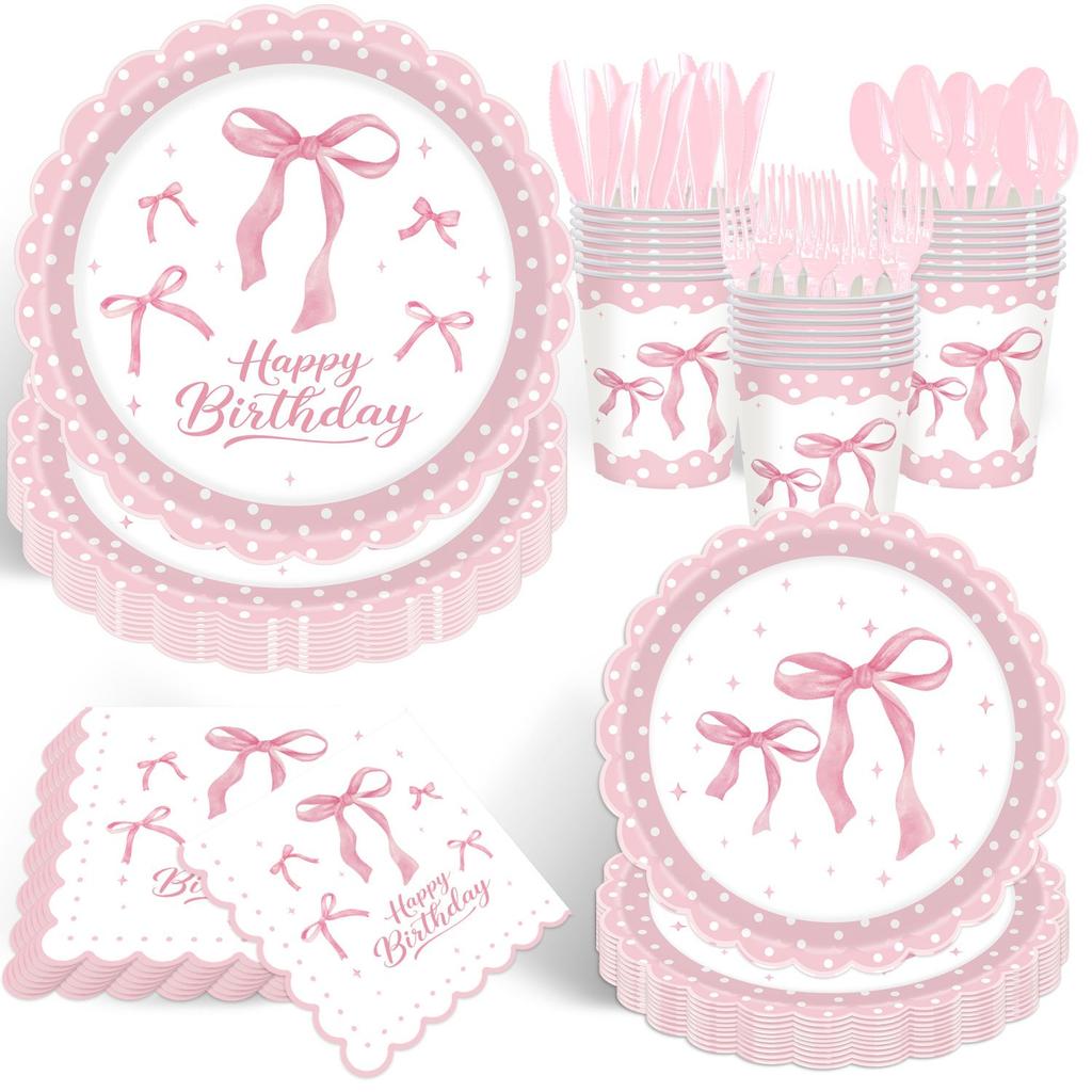 Lace Pink Bow-themed Girl Birthday Party Tableware, Disposable Paper Plate Decorative Items