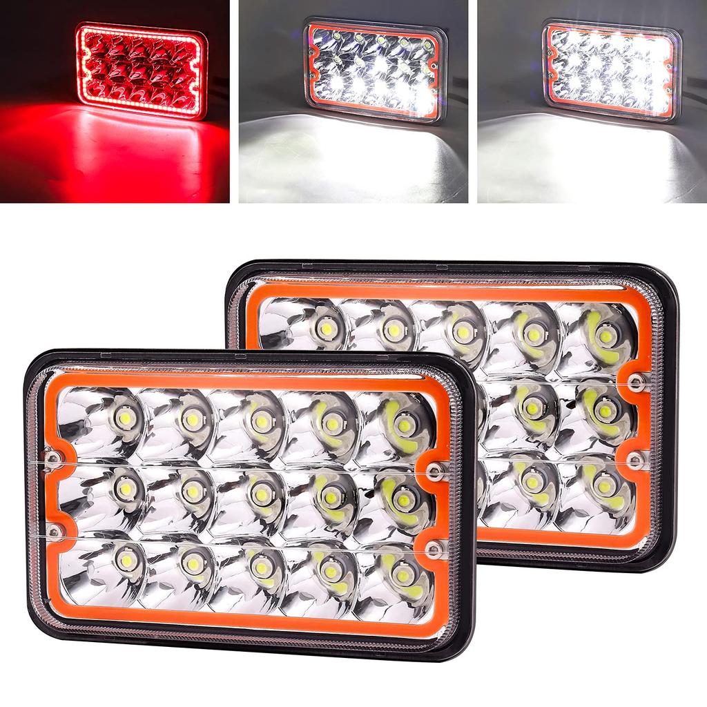 Aoling 4x6 LED Headlights, Square Headlights, Hi/Lo Sealed Beam, Red, 2 Pieces