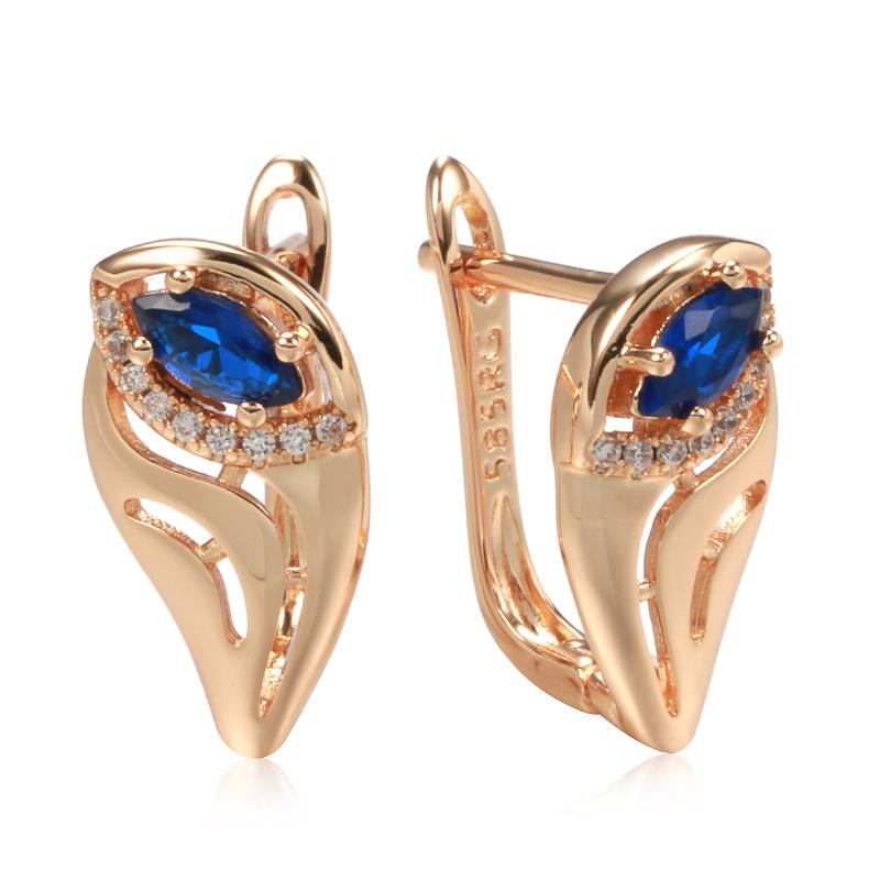 New Trendy Blue Natural Zircon Earrings For Women Rose Gold Leaf Earrings Unusual Vintage Wedding Jewelry New