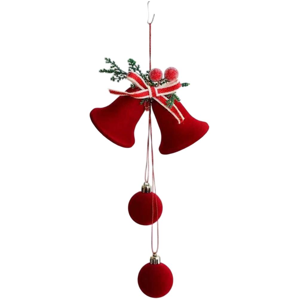 Christmas Flocked Bell Ornaments Set Nordic Style Cloth Hanging Decoration For Tree Or Window, Red Display Flocked Bell Decor