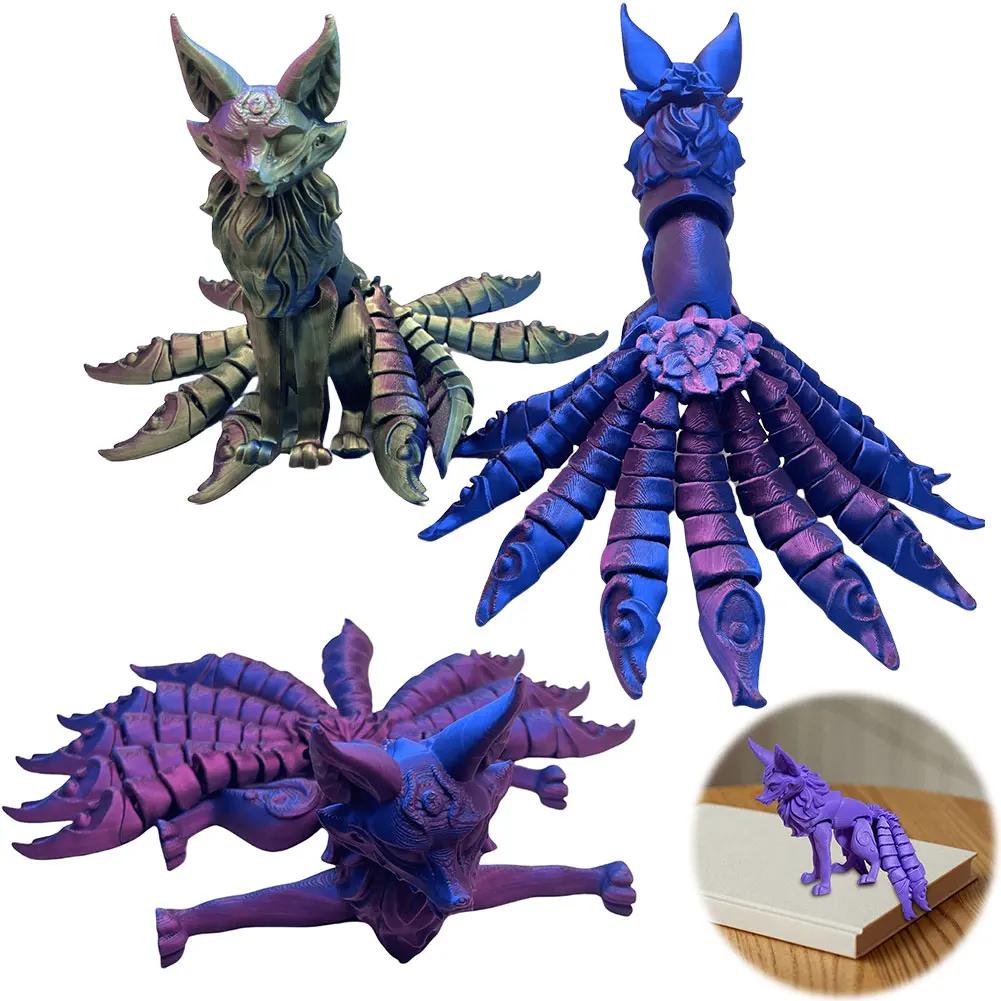 18cm 3D Printed Multi-articular Movable Model Handmade Home Decoration Fox Fidget Toy Nine-Tailed Fox Action Figures Desk Decor