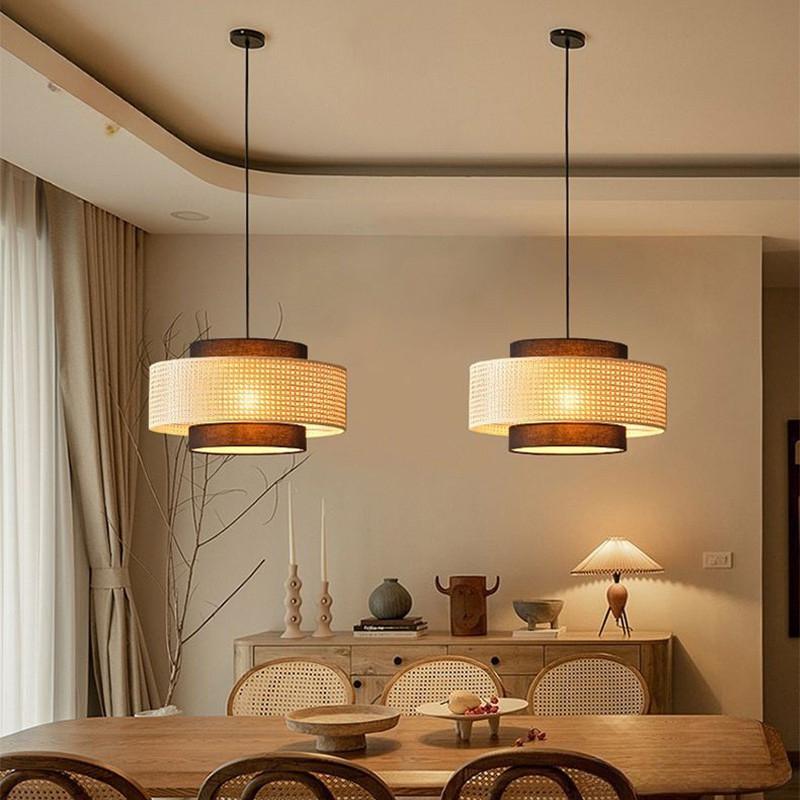 Our vintage chandeliers feature hand-woven bamboo lampshades, offering a classic and unique design that will add a distinctive touch to your home or hotel.