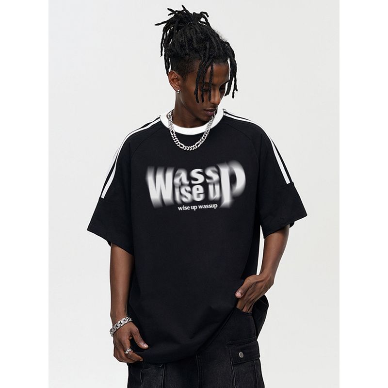 Wassup Heods Trendy Brand Webbing Short-Sleeve T-Shirt for Men, Summer Loose American-Style Phantom Letter T-Shirt Top