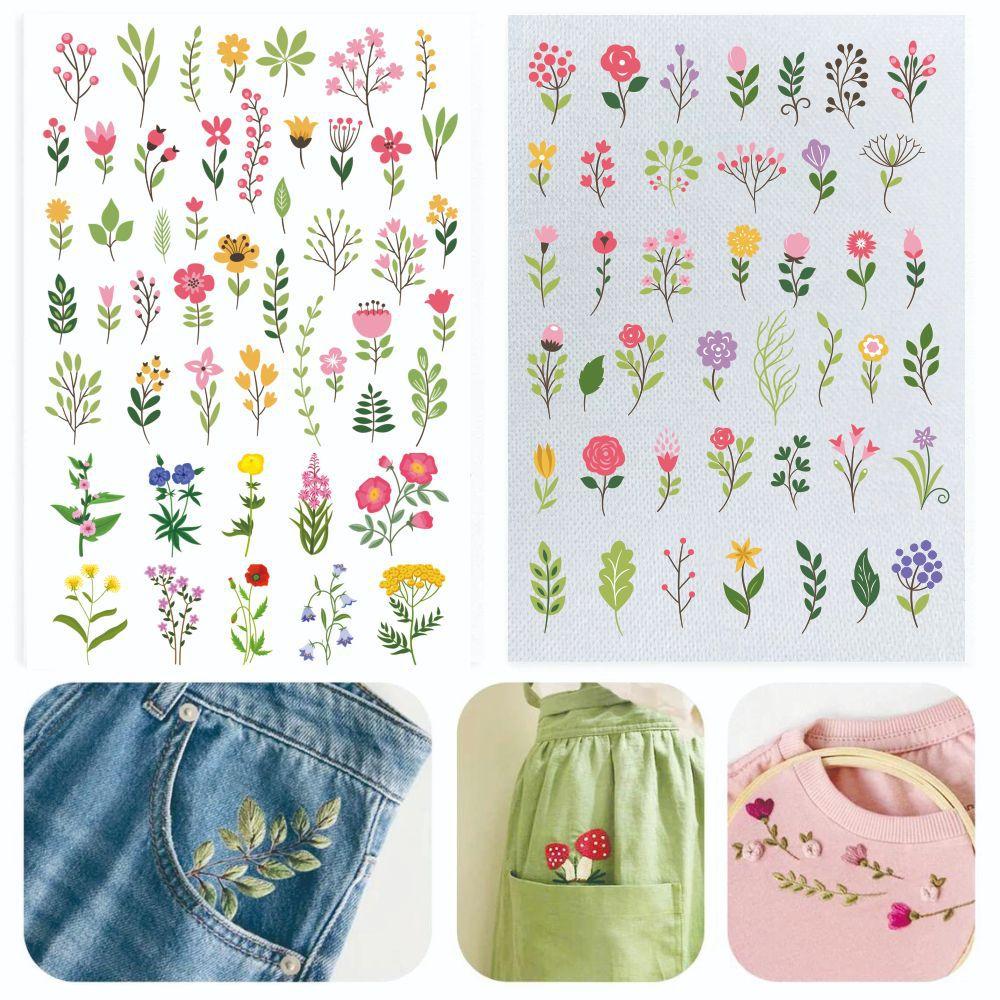 Water-Soluble Embroidery Stabilizer-Self-Adhesive Non-Woven Backing with Colorful Floral Prints Sticky Fabric for Hand Sewing
