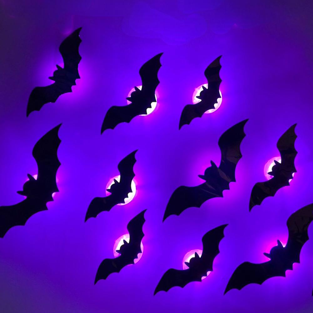 LED Halloween 3D Lighted Bats Battery Powered PVC Wall Decor Light Halloween Spider Atmosphere Lamp for Stairs Bedroom Window