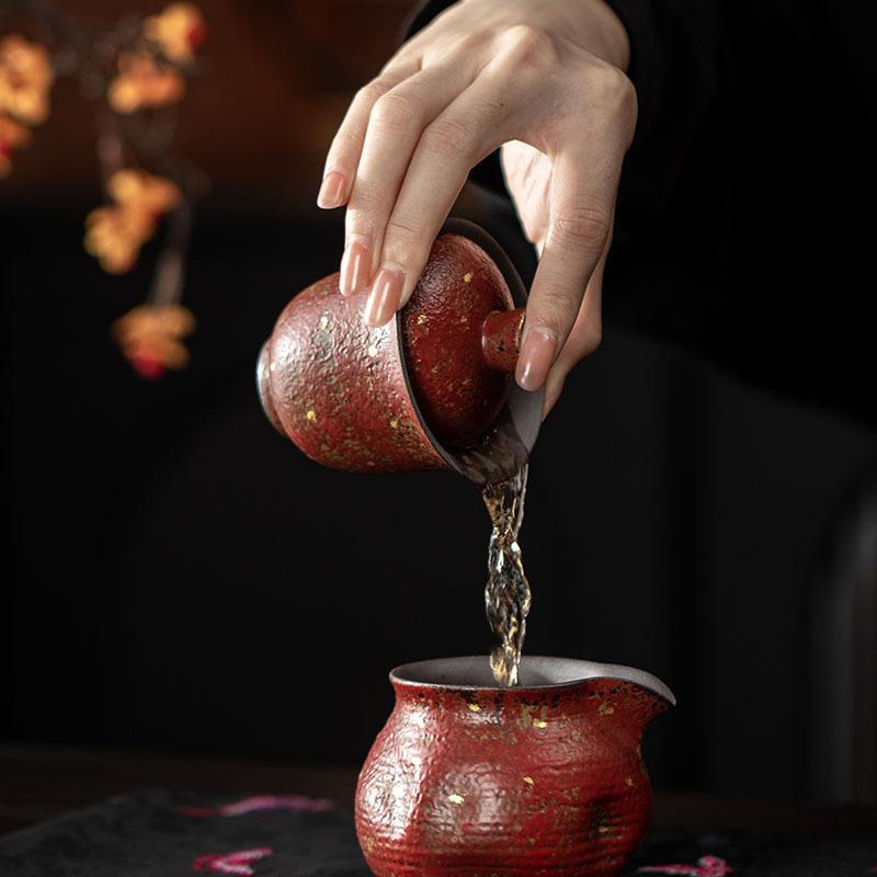 130ml Kiln Change Red Old Rock Mud Gaiwan Retro Tea Tureen Teas Bowl With Lid Kit Tea Maker Cover Bowl Kung Fu Tea Set Decor