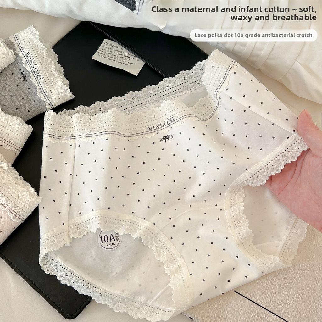 Plus Size Lady Spring Lace Pure Cotton 10A Antibacterial Extended Crotch Waist Triangle Briefs