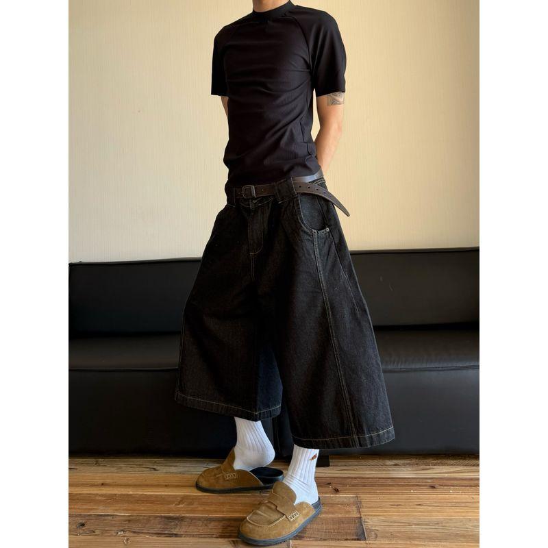 Cabbage Coke American Vintage Black Shorts Cropped Pants Men's Summer Wide Leg Loose Original Cow Jeans Tide